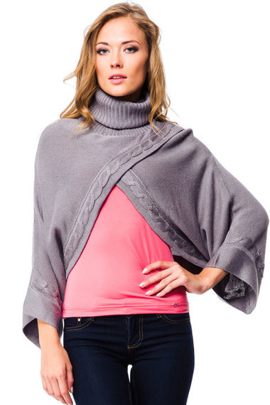 Теплое болеро с длинными рукавами из трикотажа крупной вязки подарит Вам тепло и уют! Модель имеет широкие длинные рукава и объемный ворот.