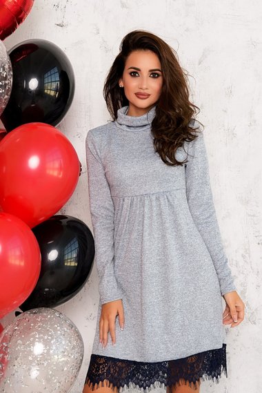 Серое платье с черным кружевом Open-Style